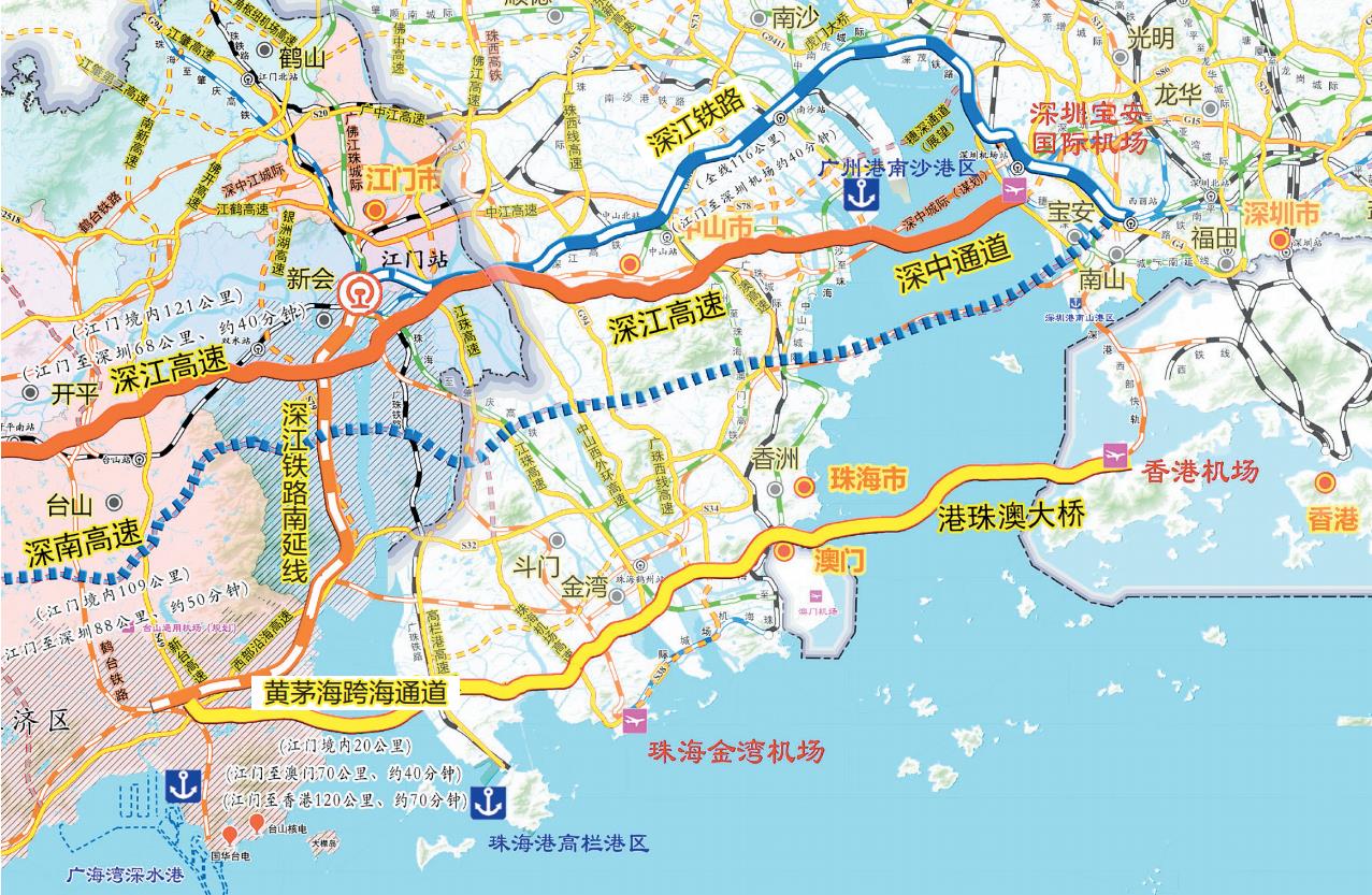 ????當(dāng)前,江門(mén)在軌道交通方面,已開(kāi)通廣珠鐵路、廣珠城軌、江湛鐵路、南沙港鐵路,深江鐵路、珠肇高鐵正加快建設(shè),廣佛江珠城際正積極開(kāi)展前期工作,江門(mén)站作為珠西綜合交通樞紐的地位不斷鞏固提升;在高速路網(wǎng)方面,已建成通車廣中江高速、中開(kāi)高速、中江高速改擴(kuò)建等13條高速公路,對(duì)外加快深南高速、南新高速、廣臺(tái)高速江門(mén)臺(tái)山至開(kāi)平段、江肇第二高速等項(xiàng)目前期工作,對(duì)內(nèi)扎實(shí)推進(jìn)江鶴高速改擴(kuò)建、銀洲湖高速等項(xiàng)目建設(shè),已形成“外引內(nèi)聯(lián)”的高速廊道。