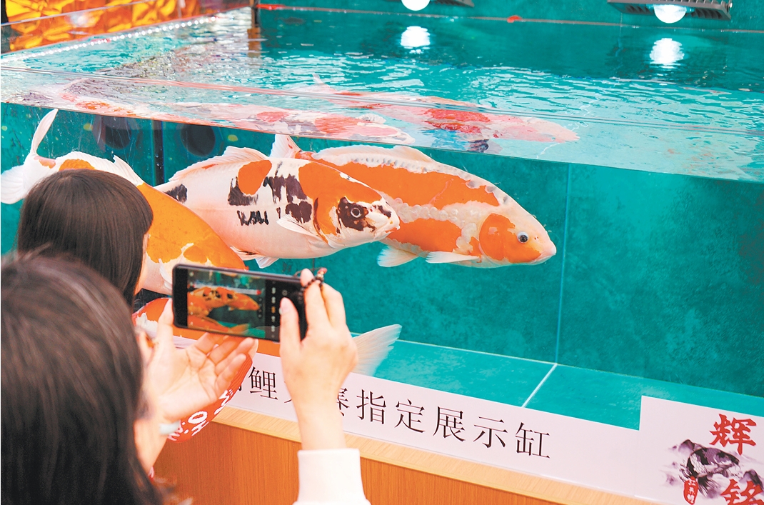 市民舉起手機(jī),定格錦鯉在水中悠然自得的優(yōu)雅游姿。