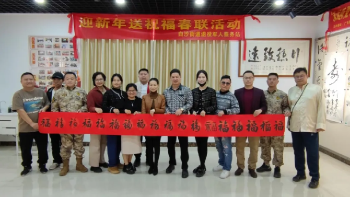 活動特邀廣東省硬筆書法協(xié)會會員、江門互域文化藝術(shù)工作站、肇慶互域文化藝術(shù)工作站非遺藝術(shù)師一行蒞臨白沙街道退役軍人服務(wù)站畫室現(xiàn)場揮毫潑墨,書寫一幅連續(xù)18個不同風(fēng)格“福”字長聯(lián),一幅幅寓意吉祥、充滿喜慶的春聯(lián),現(xiàn)場領(lǐng)取到春聯(lián)的老兵臉上洋溢著喜悅之情,紛紛表示現(xiàn)場手寫定制自己喜歡的春聯(lián)內(nèi)容很滿意,為即將來臨的春節(jié)增添了濃濃的喜慶。