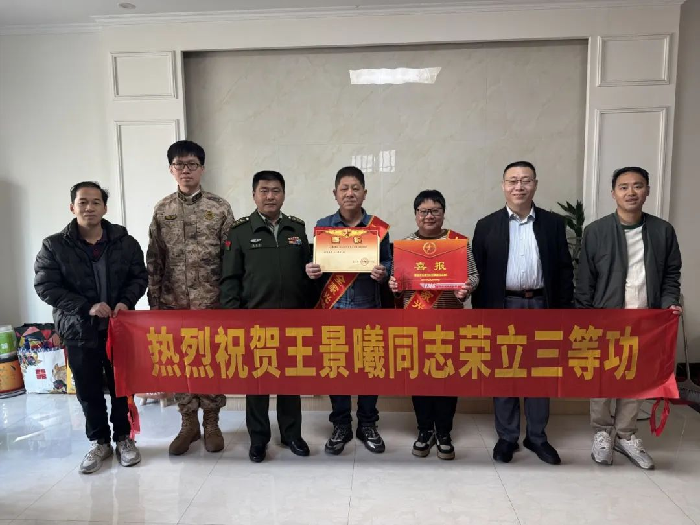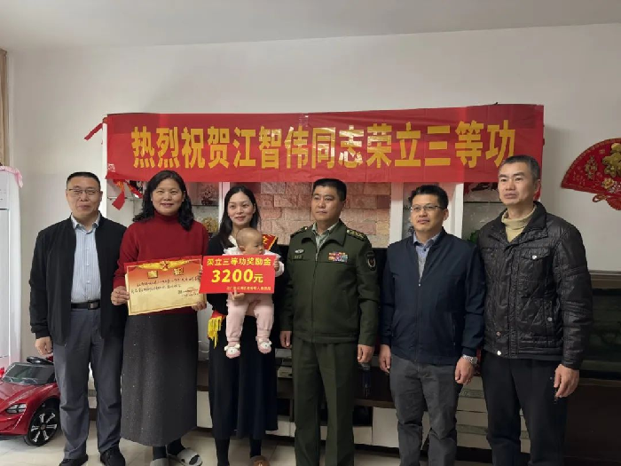 近日,江海區(qū)人武部、江海區(qū)退役軍人事務(wù)局及相關(guān)街道聯(lián)合成立送喜報(bào)慰問組,上門為榮立三等功的現(xiàn)役軍人江智偉、王景曦家庭,榮立三級(jí)表彰鄧仲舒家庭送上喜報(bào),向家屬們致以熱烈祝賀和新年問候。