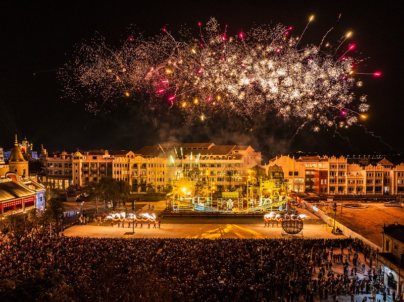 赤坎華僑古鎮(zhèn)的煙花和火秀表演讓人震撼。 赤坎華僑古鎮(zhèn)供圖