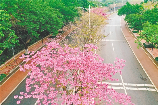 ????為提升龍灣路作為城市重要出入路段的綠化景觀,蓬江區(qū)城市管理和綜合執(zhí)法局在龍灣路中間綠化帶種植了約300棵紫花風(fēng)鈴木,并對(duì)道路沿線的雜草雜物進(jìn)行了全面清理,同時(shí)對(duì)綠化帶進(jìn)行補(bǔ)種。此外,該局還以江門(mén)市花簕杜鵑為主題,對(duì)龍灣路與江門(mén)大道輔道交會(huì)處的4個(gè)分流島以及龍灣公園鄰近道路一側(cè)的邊坡進(jìn)行了景觀提升,增設(shè)微景觀節(jié)點(diǎn),旨在打造“一路一特色,四季有花賞”的城市風(fēng)景線,為市民提供更加優(yōu)美宜人的出行環(huán)境。