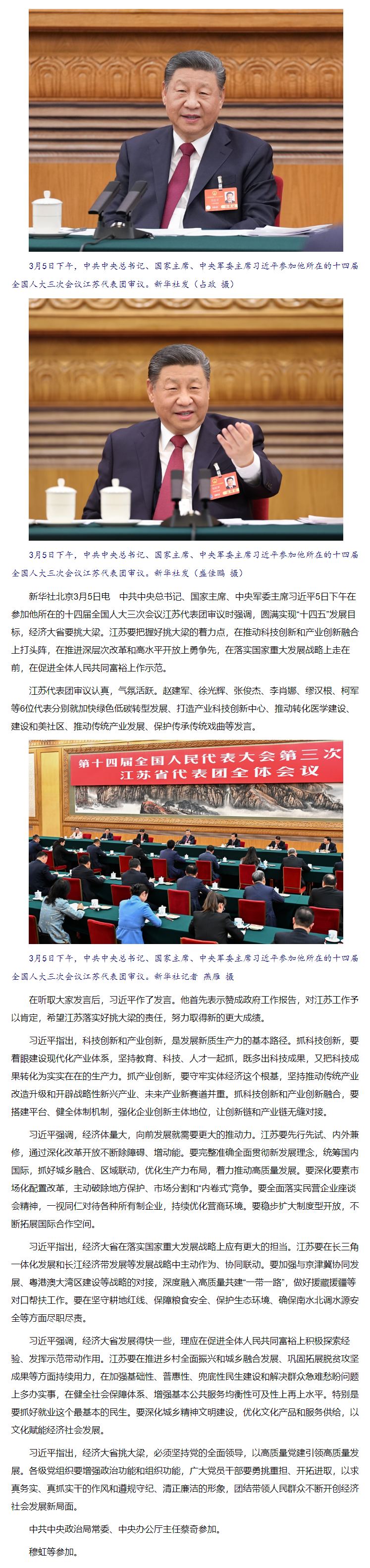 習(xí)近平在參加江蘇代表團(tuán)審議時(shí)強(qiáng)調(diào) 經(jīng)濟(jì)大省要挑大梁為全國(guó)發(fā)展大局作貢獻(xiàn)