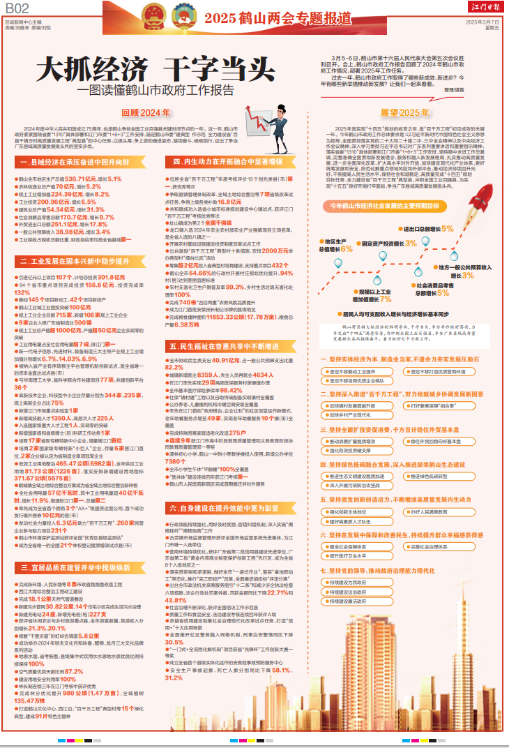 ????3月5-6日,鶴山市第十六屆人民代表大會(huì)第五次會(huì)議勝利召開(kāi)。會(huì)上,鶴山市政府工作報(bào)告回顧了2024年鶴山市政府工作情況,部署2025年工作任務(wù)。