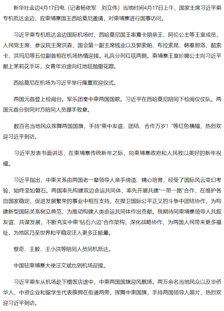 習(xí)近平抵達金邊對柬埔寨進行國事訪問