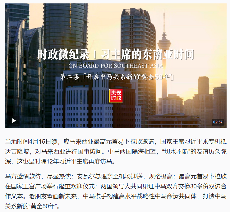 時政微紀錄丨習主席的東南亞時間:開啟中馬關系新的“黃金50年”