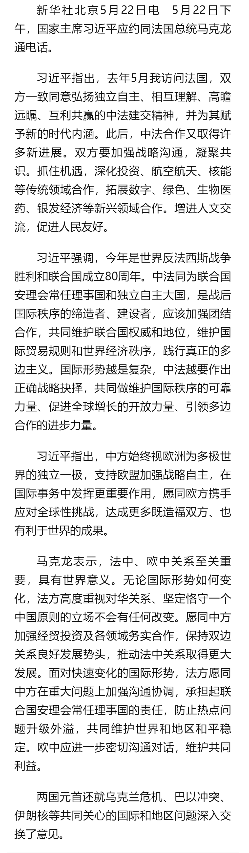習(xí)近平同法國(guó)總統(tǒng)馬克龍通電話