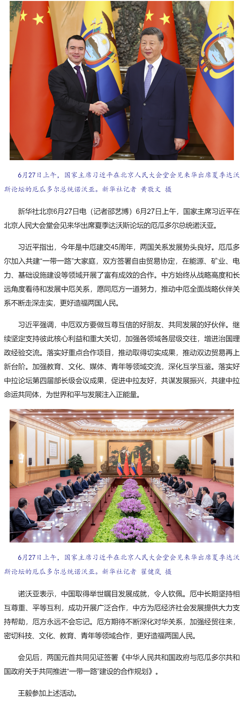 習近平會見厄瓜多爾總統(tǒng)諾沃亞