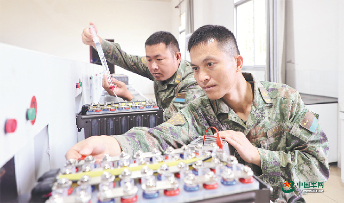 南部戰(zhàn)區(qū)空軍某場站官兵進(jìn)行蓄電池保養(yǎng)。呂世強(qiáng)攝