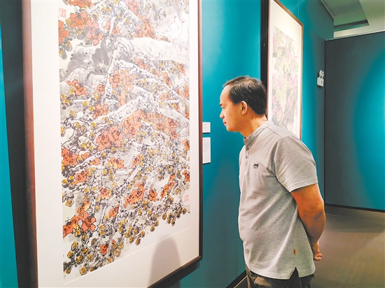 ????來自新會的美術愛好者張芷君沉浸在作品中,細細觀摩品味?!霸诮T能看到這么多知名畫家的作品,很難得!我是來學習的,學習名家的風格、技法和構(gòu)圖?!彼f,“比如林藍老師的木棉花作品,視覺沖擊力很強,構(gòu)圖也很新穎?!?/p>