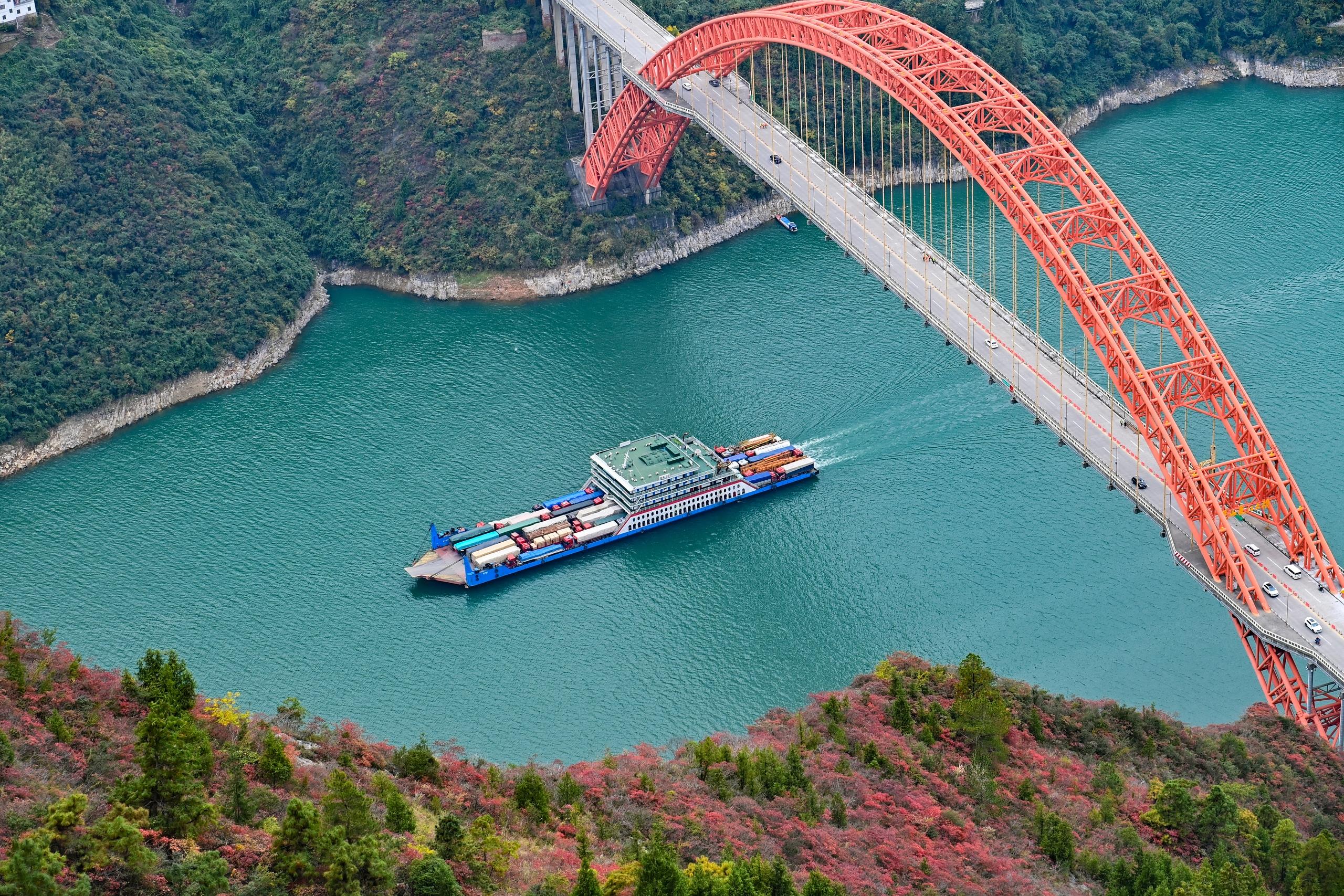 ??△貨輪航行在長江巫峽段水域