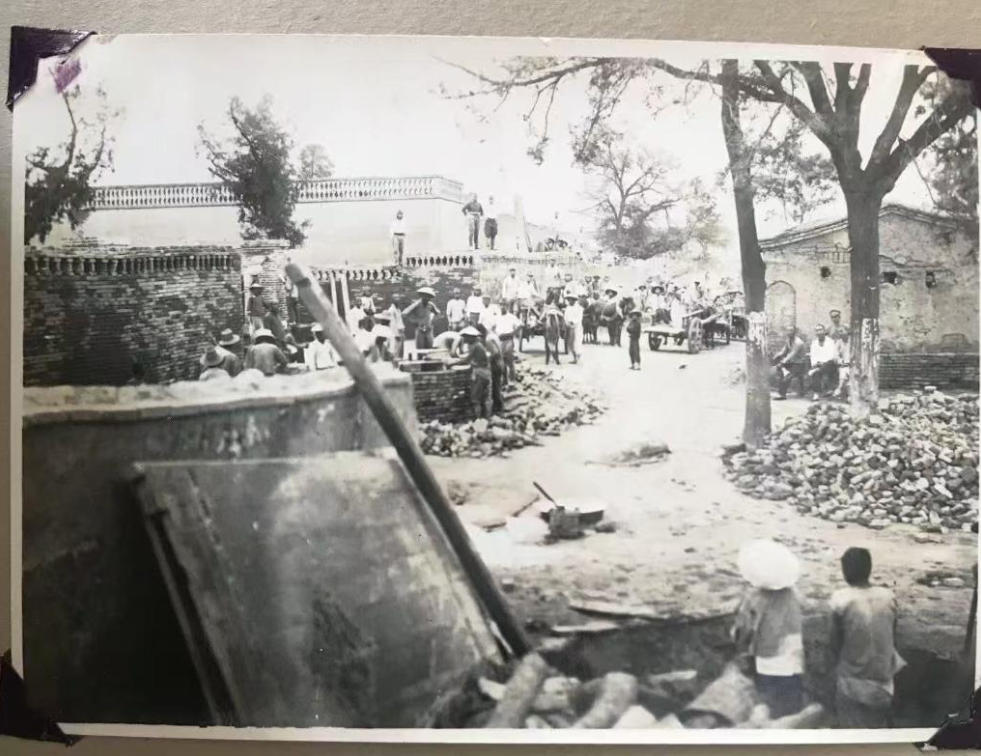 ??相冊里的照片:1939年日軍逼迫河北固安群眾修筑碉堡。(固安縣委辦公室供圖)