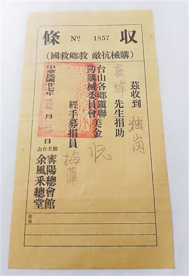 ????市檔案館有關(guān)負(fù)責(zé)人表示,這些捐贈的史料是五邑僑胞傾力支援祖國抗戰(zhàn)的實(shí)物見證,生動詮釋了海外僑胞與祖國同呼吸、共命運(yùn)的深厚情感,彰顯了他們愛國愛鄉(xiāng)的赤子情懷。