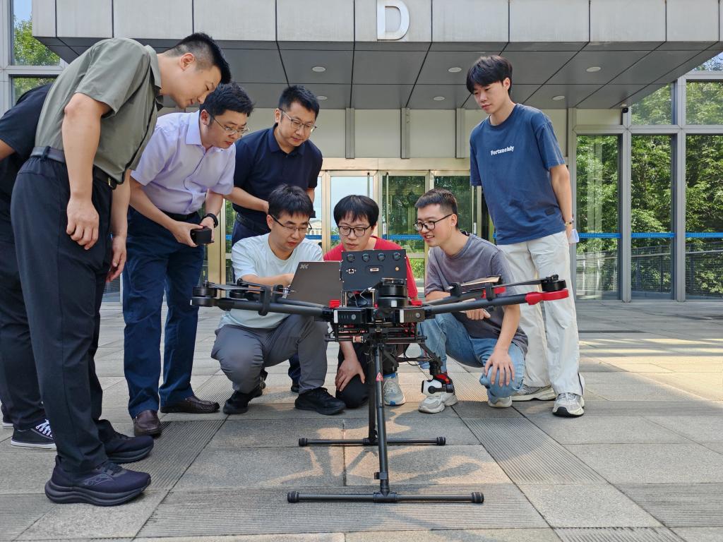 8月13日,北京航空航天大學(xué)師生進(jìn)行自研仿復(fù)眼偏振組合導(dǎo)航系統(tǒng)無人機(jī)聯(lián)調(diào)測(cè)試。(張之軒 攝)