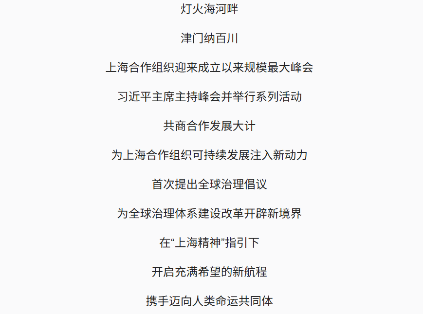 時(shí)政紀(jì)錄片丨開啟充滿希望的新航程——習(xí)近平主席主持上海合作組織天津峰會(huì)并舉行系列活動(dòng)紀(jì)實(shí)