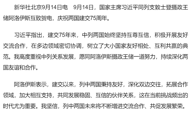 習近平同列支敦士登攝政王儲阿洛伊斯就中列建交75周年互致賀電