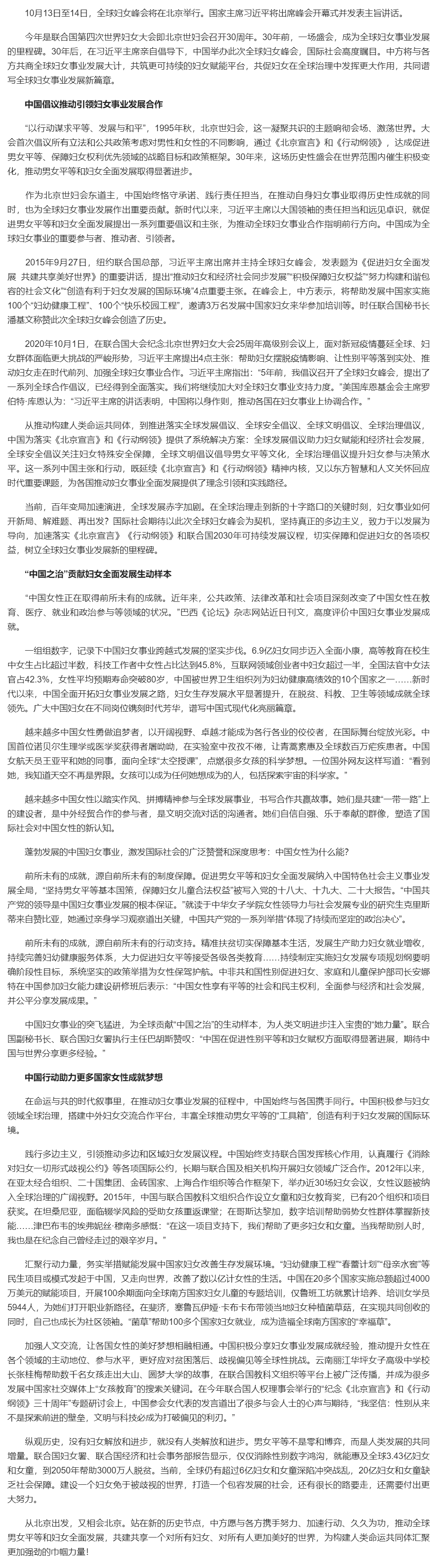 譜寫全球婦女事業(yè)發(fā)展新篇章——寫在全球婦女峰會即將舉行之際