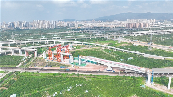 深江高鐵北起深圳西麗站,南至江門站,正線全長約116公里,其中深圳西麗至廣州南沙段設計時速200公里,廣州南沙至江門段設計時速250公里。中鐵二十五局承擔了深江高鐵12標13.41公里正線、545孔箱梁制運架以及全線鋪軌等施工任務。
