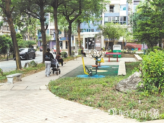 ????新會(huì)碧桂園柏麗郡小區(qū)開展愛國(guó)衛(wèi)生運(yùn)動(dòng),環(huán)境變得更加整潔舒適,居民安心在家門口小公園散步、休息。鐘珍玲攝