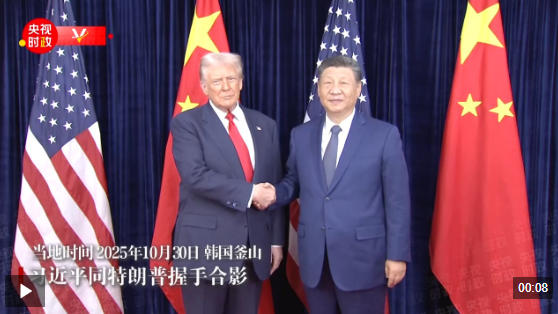 ? 當(dāng)?shù)貢r(shí)間10月30日中午,中美元首會(huì)晤開始前,習(xí)近平同特朗普握手合影。