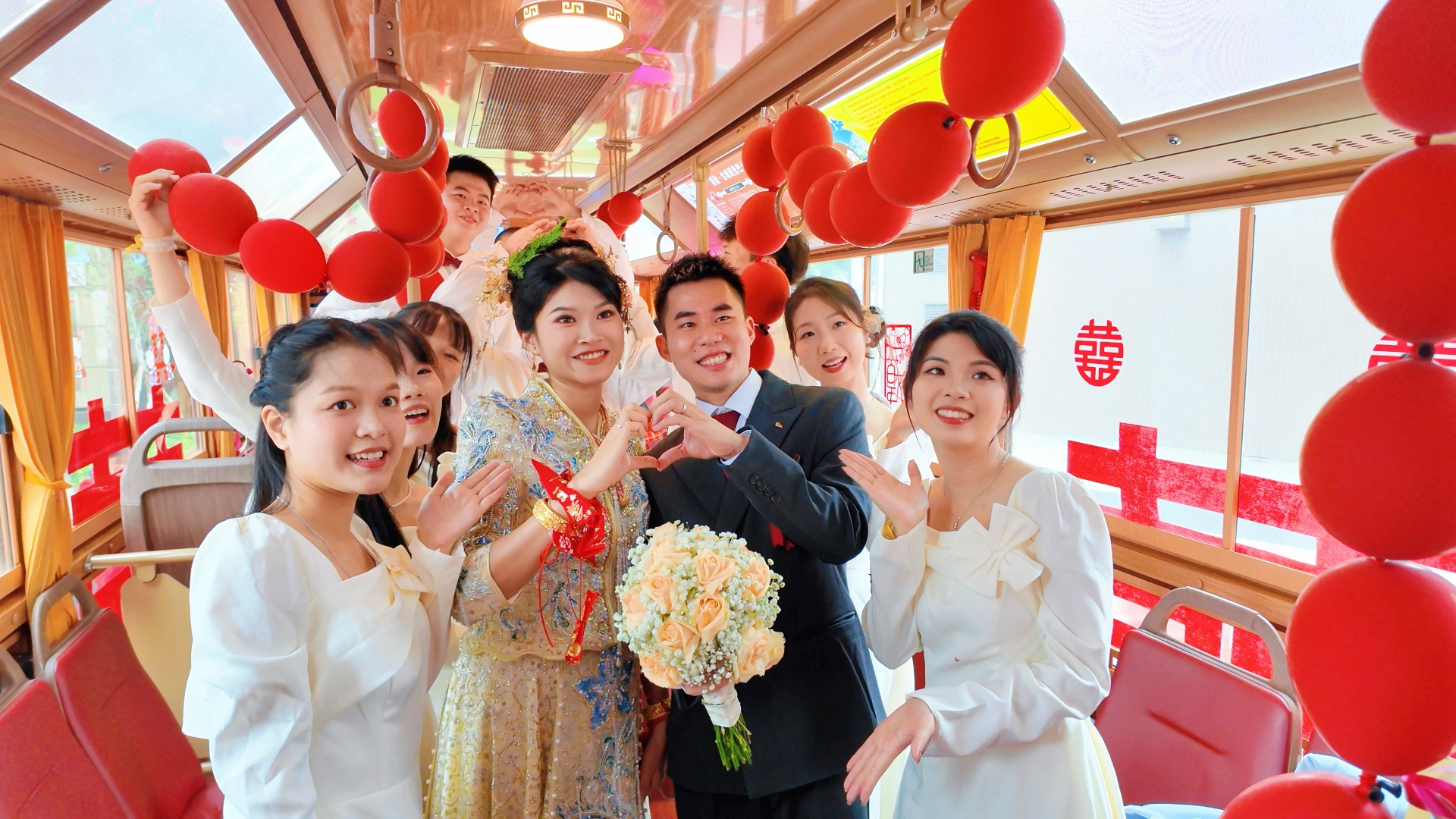 據(jù)悉,此次選擇用“新寧號(hào)”觀光巴士接親的是新郎李毅華和新娘黃婉欣,他們用這輛“鐺鐺車”迎接自己的幸福時(shí)刻。“用觀光巴士作為婚車,不僅符合文明環(huán)保的理念,還能讓眾多親友一同參與婚禮,共同見(jiàn)證我們的幸福,這樣的方式更有意義!”李毅華說(shuō)。黃婉欣也表示,和親朋好友一起乘坐這輛特別的婚車,一路上歡聲笑語(yǔ)不斷、溫馨快樂(lè),感覺(jué)就像過(guò)年一樣,讓她對(duì)這場(chǎng)婚禮留下了深刻、美好的印象。