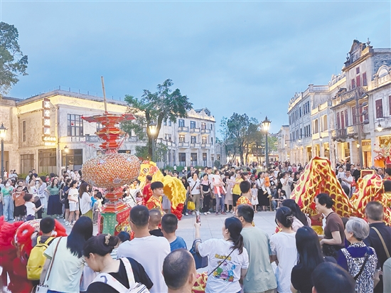 除了互動玩法,赤坎華僑古鎮(zhèn)的火秀等沉浸式演出更是將情緒氛圍拉滿,光影流轉間,僑鄉(xiāng)歷史與現代藝術碰撞交融,讓游客在視覺震撼中收獲情感共鳴。
