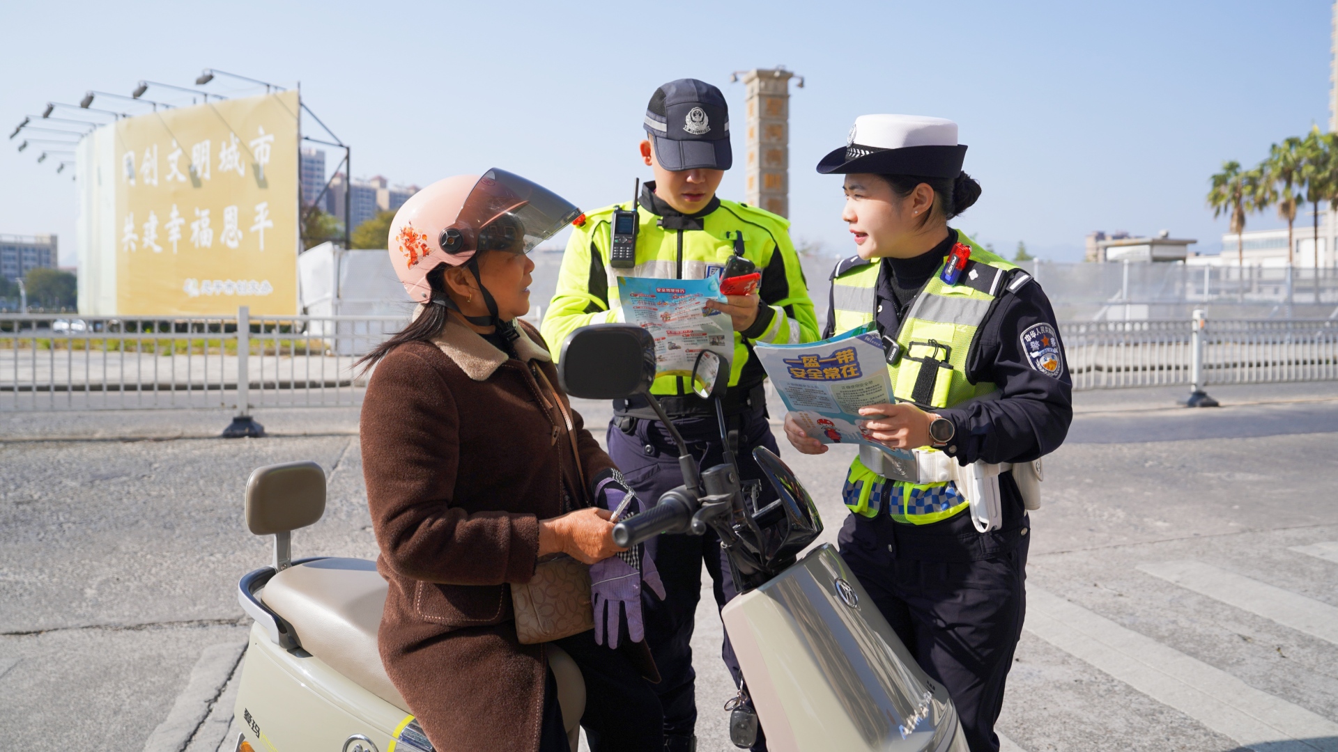 此外,交警在路口設立教育點,組織電動自行車、摩托車駕駛人接受現(xiàn)場教育。通過宣傳展架圖文展示、派發(fā)宣傳單張等方式,進行“一對一”或“小課堂”式講解,開展針對性警示教育,使其直觀認識違法行為的現(xiàn)實危害。