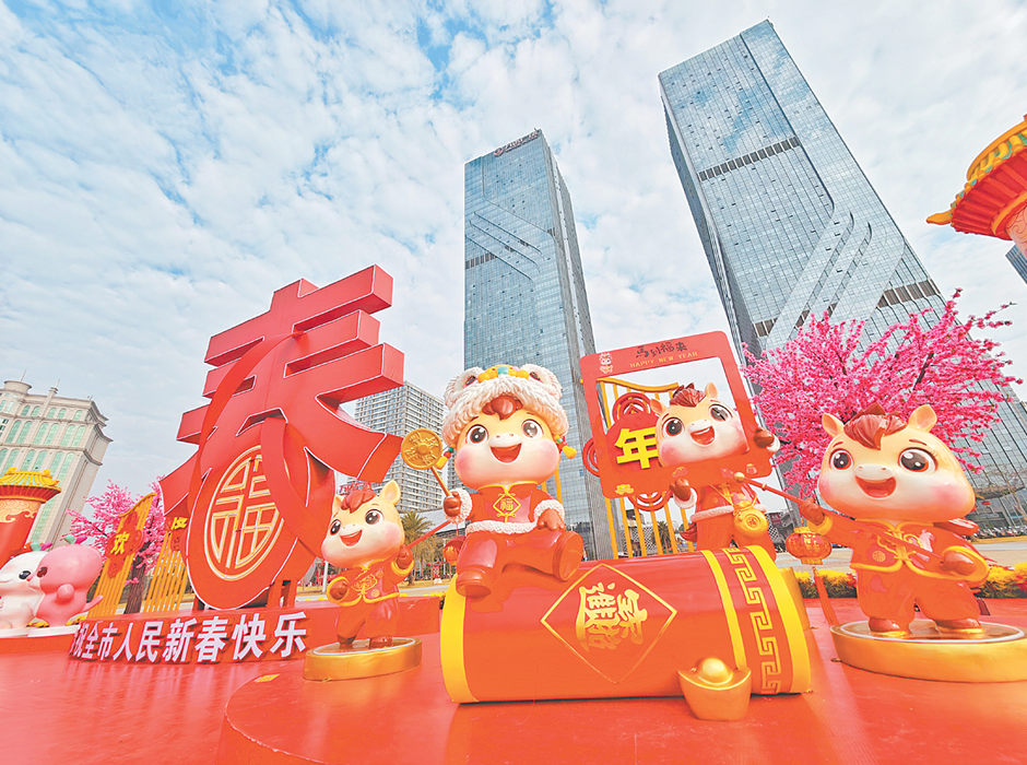 ????在蓬江萬達廣場,卡通馬年玩偶和十五運會吉祥物喜羊羊、樂融融攜手迎接新春佳節(jié),充滿了活力;東湖公園前,醒目的馬年花卉造型吸引了眾多市民打卡;在啟明里廣場的新年集市打卡日歷,也讓人感受到農(nóng)歷新年即將到來的熱烈氣氛。