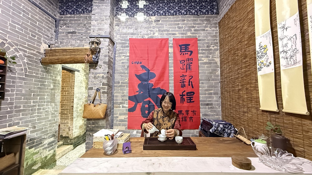 ????這份厚重的歷史文化底蘊(yùn),正吸引越來越多文化工作者走進(jìn)古村老宅。與莘野廬工作室相隔不遠(yuǎn)的廣東粵灣環(huán)境科技有限公司,同樣由一棟老村屋改造而成。170多平方米的空間里,復(fù)古雕花木門、古樸墻面、雅致庭院,與現(xiàn)代辦公設(shè)施相映成趣。該公司負(fù)責(zé)人謝瑩介紹,除了辦公區(qū),還設(shè)計(jì)了吧臺(tái)、餐廳和她的個(gè)人工作室,空閑時(shí)練書法、看書,將工作與生活融為一體。