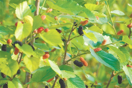 紫紅色的桑葚讓人垂涎欲滴。