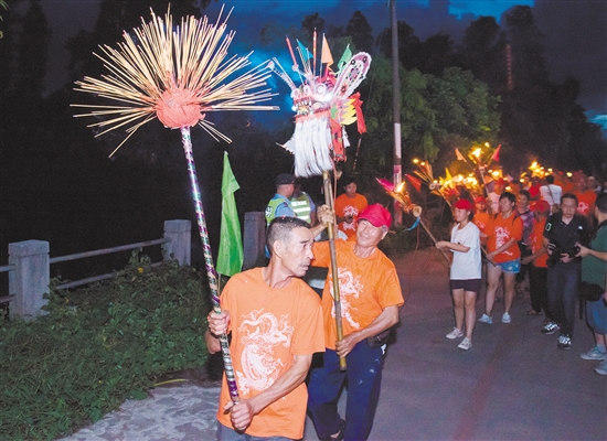 近日,新會(huì)區(qū)雙水鎮(zhèn)嶺頭村舞起了蕉樹(shù)龍,形似一條火龍,場(chǎng)面壯觀,吸引了不少人參觀。