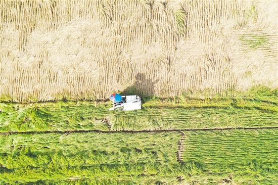新會區(qū)大鰲鎮(zhèn)農(nóng)業(yè)發(fā)達(dá),土地肥沃,水質(zhì)優(yōu)良,是著名的“魚米之鄉(xiāng)”。近日,大鰲鎮(zhèn)早造水稻陸續(xù)收割,奏響了豐收的序曲。記者在大鰲鎮(zhèn)新一村、東風(fēng)村、大鰲尾村等地見到,稻田一片金黃,豐收在望,田野上機(jī)器轟隆,引來無數(shù)燕子在上空翩翩起舞。