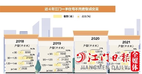 ????市住建局的數(shù)據(jù)顯示,近年來,我市90—120平方米之間的剛需戶型依然是主流,其中2021年成交占比57%;而120—140平方米,以及140平方米以上的大戶型占比也呈現(xiàn)逐漸增多的趨勢(shì),其中,2021年成交占比合計(jì)為25%。