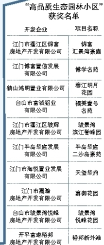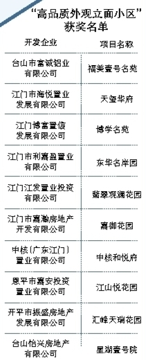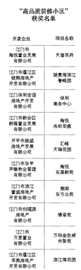 ????總的來(lái)說(shuō),在本次評(píng)選中,本地的幾個(gè)實(shí)力房企,如博富控股旗下的博學(xué)名苑和福美壹號(hào)名苑,海悅集團(tuán)旗下的天璽華府、海悅尚珩華庭和海悅東晟新苑,錦富匯景灣豪庭,駿景灣集團(tuán)旗下的駿景灣濱江譽(yù)峰園和駿景灣悅峰花園,怡福地產(chǎn)旗下的東華名岸園、星湖壹號(hào)院、博薈苑,以及半島華庭二沙島豪苑、潮聞東方北苑、翡翠觀瀾花園等,都名列前茅。另外,外來(lái)龍頭房企,如保利、碧桂園、粵海在江門(mén)的項(xiàng)目也榜上有名。