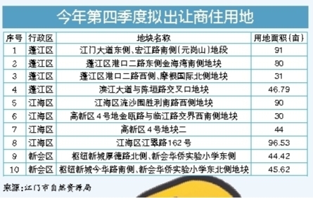 ????近日,記者從市自然資源局獲悉,第四季度市區(qū)共有10宗商住用地“待嫁”,其中不少都是“寶藏”地塊。分區(qū)域來(lái)看,這10宗土地有4宗位于蓬江區(qū),4宗位于江海區(qū),新會(huì)區(qū)則有2宗。