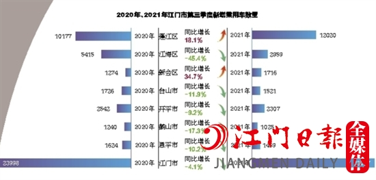 ????然而,雖然我市第三季度新增乘用車數(shù)量出現(xiàn)了下滑,但從下滑幅度來看,無疑要好于全國車市高達兩位數(shù)的同比下滑。換句話來說,在汽車芯片短缺的大環(huán)境下,江門車市依舊跑贏了全國大市場。其中原因何在?記者從市稅務(wù)局進一步了解了各區(qū)(市)新增乘用車數(shù)量的情況。